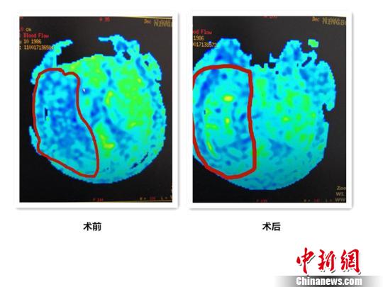 圖為小周術前-術后磁共振灌注檢查結果圖 浙江大學明州醫院供圖