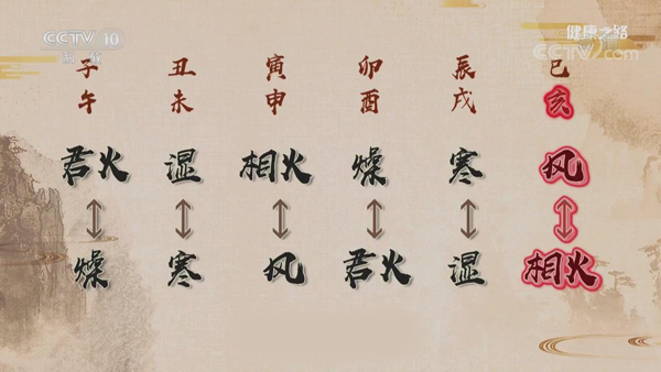 六氣是指:風(fēng)、君火、濕、相火、燥、寒六種;六氣以子、丑、寅、卯、辰、巳、午、未、申、酉、戌、亥十二地支為標(biāo)記符號組成六組相同的排列規(guī)律。2019年地支為亥,風(fēng)和相火兩種氣候特點(diǎn)比較明顯,所以屬于風(fēng)火之年。