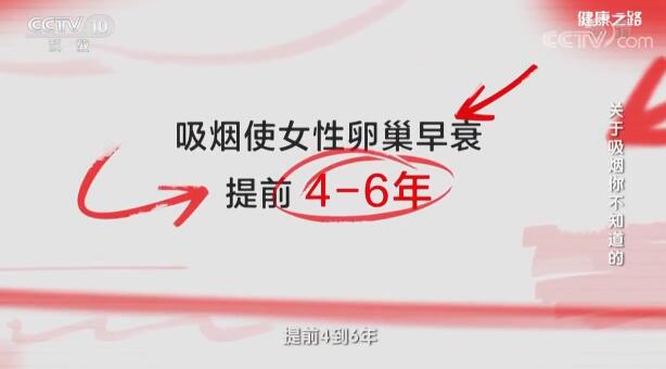 吸煙還會造成女性卵巢早衰,使女性產卵減少20%,導致卵巢功能降低,且吸煙女性流產率是不吸煙女性的兩倍。