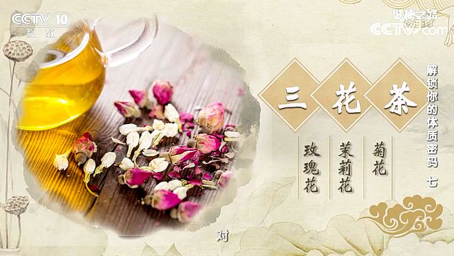 菊花利氣和血、平肝明目;茉莉花理氣開郁、辟穢和中、調理脾胃;玫瑰花理氣解郁、行血止痛。三花茶有疏肝行氣、解郁散結的效果,氣郁體質癥狀較輕的人,可以長期飲用。(資料來源:央視《健康之路》)
