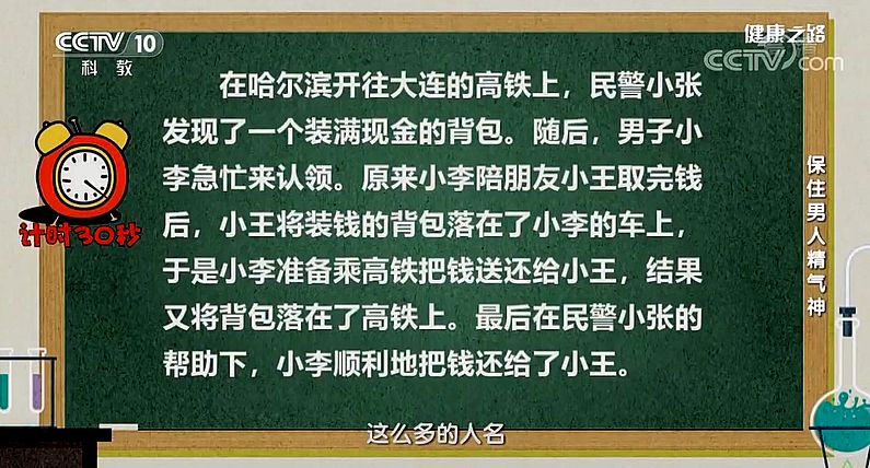 雄激素下降還會影響到注意力和記憶力。在30秒內(nèi)讀完圖片中所示的信息,然后復述信息,根據(jù)復述的信息的完整和正確性,可判斷被測試者的注意力和記憶力。