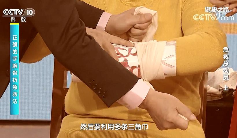 手腕橈骨處發(fā)生骨折時,“固定”和“懸吊”很重要!先“固定”距離心臟近的一端,再“固定”距離心臟遠(yuǎn)的一端。