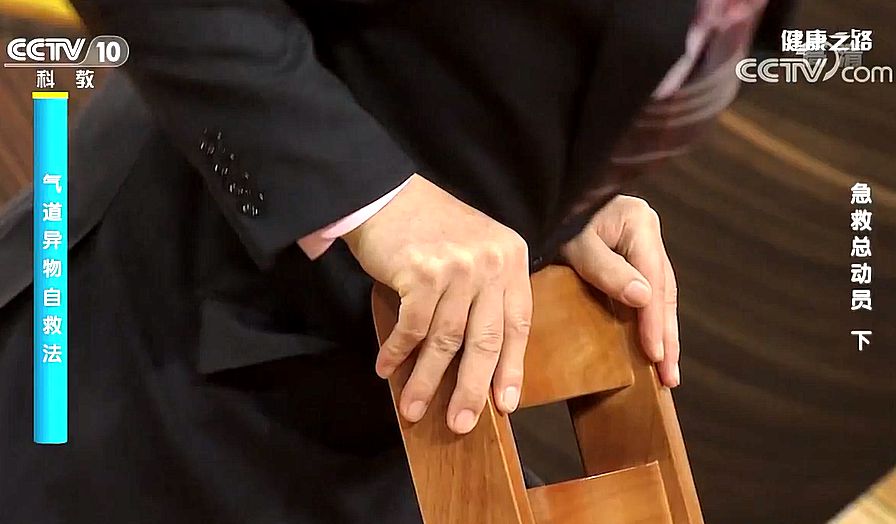 專家建議,可以趁著神志清醒的2~3分鐘,找一把椅子,將臍上兩橫指抵在椅背上,扶住椅子進行沖擊,實現自救。