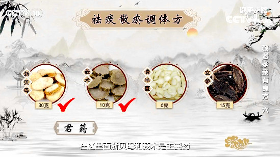浙貝母和莪術(shù)屬于君藥,浙貝母袪痰、軟堅散結(jié)。
