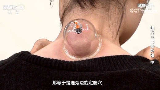 將真空罐扣準大椎穴和定喘穴,抽真空進行治療。