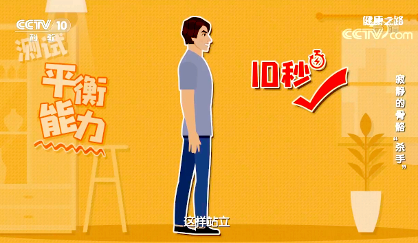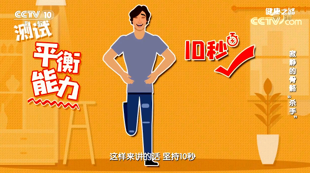 閉上眼睛,緩慢抬起一只腳,雙手叉腰,堅持10秒。