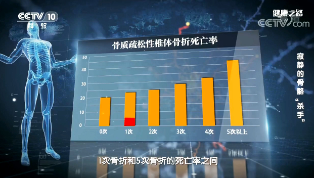 老年人的髖部骨折直接死亡率為6%-12%。除了骨折部位,骨質(zhì)疏松導致的死亡還跟骨折的次數(shù)有關,隨著骨折次數(shù)的增加,死亡率也會隨之增高。