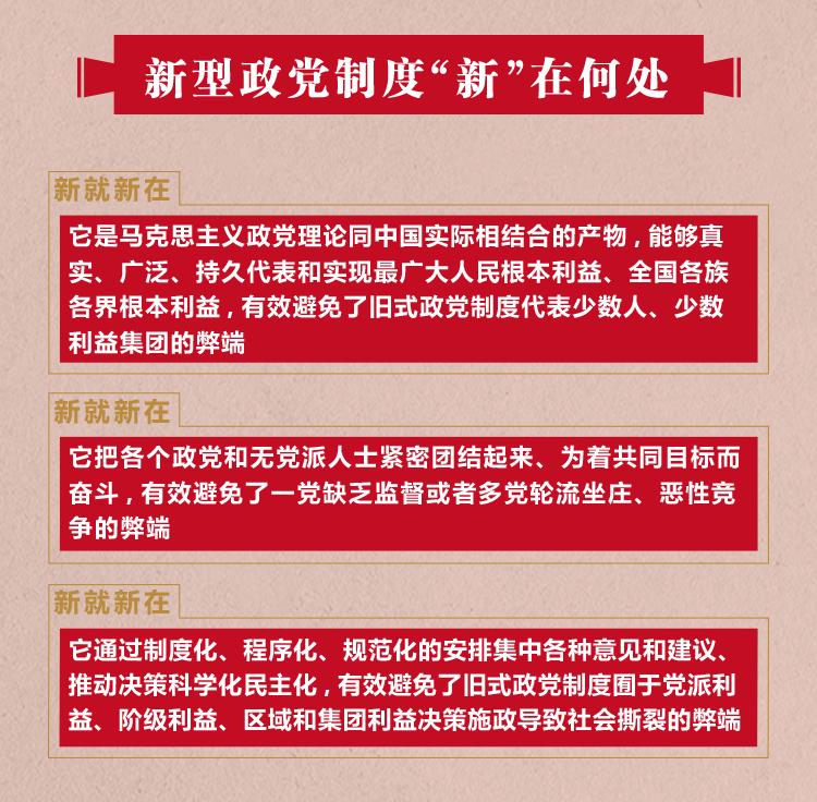 這是習近平首次提出新型政黨制度。新舊對比,高下立判。習近平在講話時強調,這一制度不僅符合當代中國實際,符合中華民族優秀傳統文化,是對人類政治文明的重大貢獻。這一表述充分彰顯了中國的制度自信。