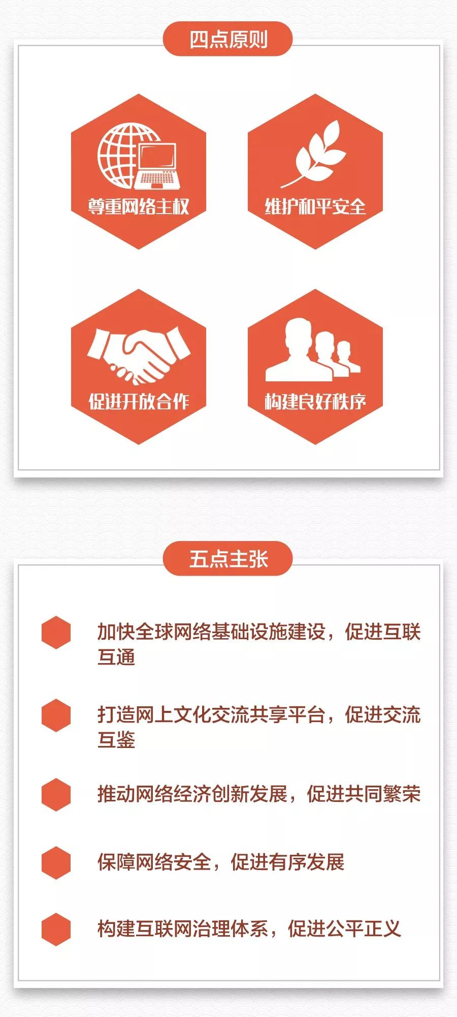 習近平曾指出,互聯(lián)網(wǎng)發(fā)展是無國界、無邊界的,利用好、發(fā)展好、治理好互聯(lián)網(wǎng)必須深化網(wǎng)絡空間國際合作,攜手構(gòu)建網(wǎng)絡空間命運共同體。要理直氣壯維護我國網(wǎng)絡空間主權(quán),明確宣示我們的主張。為此,習近平提出“四點原則”和“五點主張”:
