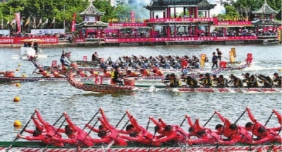????6月2日,2018海峽兩岸(集美)龍舟文化節暨海峽兩岸龍舟賽在廈門集美啟幕,海峽兩岸共有53支隊伍參與角逐。呂明攝?光明圖片/視覺中國