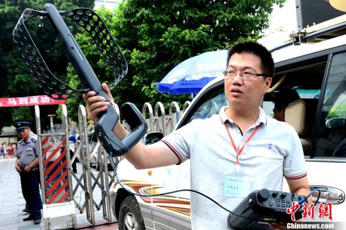 資料圖:2016年6月7日,福州市普通高校招生考試無線電監測聯合行動小組,派出技術人員、移動監測車對福州市區各考點開展無線電監測、監聽,保障高考公平、公正地進行。 劉可耕 攝