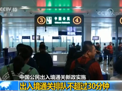 中國公民出入境通關新政實施 出入境通關排隊不超過30分鐘