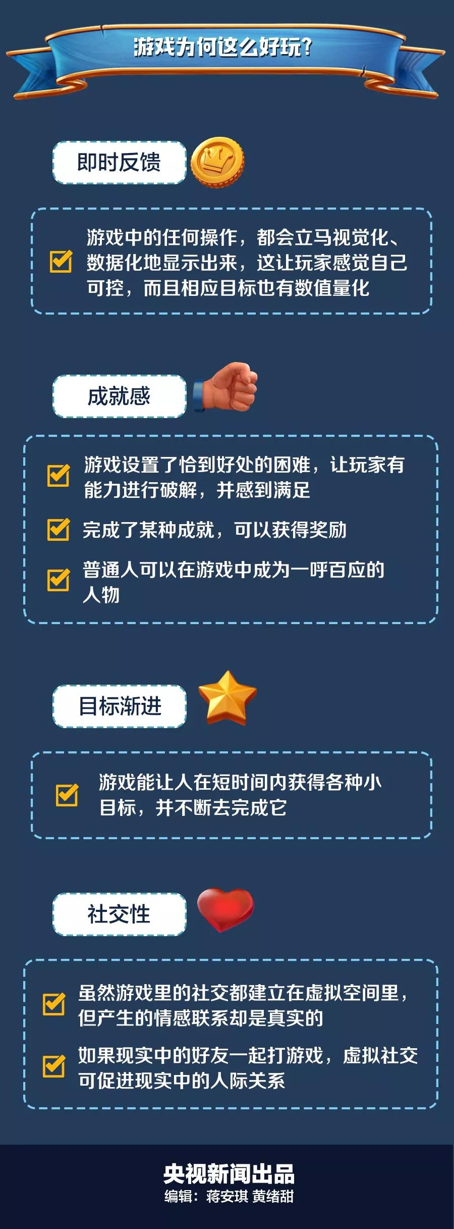實際上,只要是商業化的電子游戲,其設計都是以讓人沉迷為目的。不過,只要玩家有足夠的自控能力,就能做好工作、生活、學習與游戲的時間分配,而不至于“游戲成癮”。