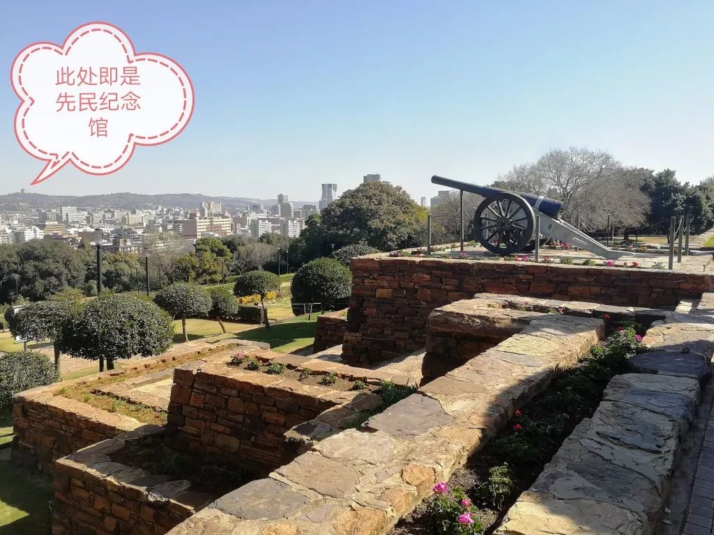 先民紀念館的建立是為了紀念那些在十九世紀三十年代遠離開普半島,趕著牛車向北遷徙,在比勒陀利亞一帶定居的布爾人祖先(南非荷蘭人)而特地修建的。紀念館入口處,有一張對紀念館的簡要介紹。沒錯,全部都是中文。