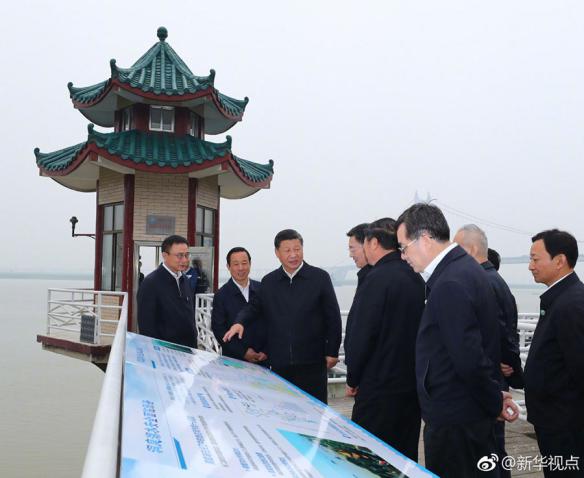 2018年4月25日,習(xí)近平考察被譽(yù)為洞庭湖及長(zhǎng)江流域水情“晴雨表”的城陵磯水文站。圖片來源:新華社