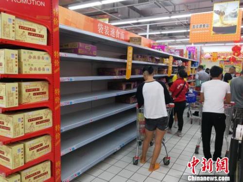 資料圖:超市的方便面貨架被一掃而空 翟李強(qiáng) 攝