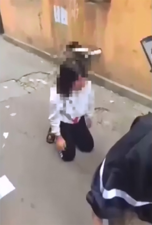近日,網(wǎng)傳一段視頻顯示,一女生被多名女生威脅下跪并被踹倒在地,此過(guò)程中,被下跪女生還遭遇扇耳光、強(qiáng)迫吸煙和潑水等惡劣行為。