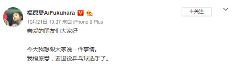 福原愛微博宣布退役
