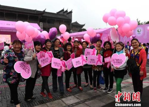 資料圖:重慶市民手舉“關愛女性健康”等字樣牌子,呼吁大家關愛女性。 周毅 攝
