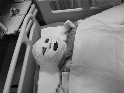 全身大面積燒傷,躺在床上接受治療的李辰璽。