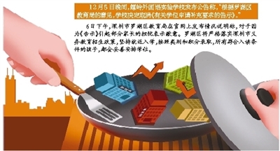 中原地產首席分析師張大偉稱,深圳作為最有活力的城市,教育資源嚴重不足。深圳某校以房產面積限制入學其實只是暴露了教育資源不均衡的問題。對于教育資源當下的確嚴重短缺的學校來說,執行核查是否真實居住的確是解決短缺的一個辦法,當下北京的海淀、西城有很多學校在做入學居住調查。這是個具有普遍性的問題,要解決這個問題恐怕需要時間,等待人口結構變化,等待公共資源的均衡化。文/本報記者 朱開云 供圖/視覺中國