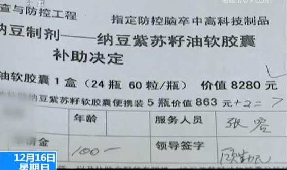 至此,整個非法推銷保健食品的套路已經(jīng)逐漸清晰:第一步保健食品推銷者首先通過免費贈送獲取老年人個人信息,然后邀請老年人參與所謂健康講座,引出“腦卒中”的概念,接著組織頸動脈體檢,加深老人們的恐慌心理;在前三步準備階段完成之后,營銷人員就會邀請老年人參加所謂的專家巡診,夸大宣傳保健食品本不具有的溶栓功效,最后進行一對一問診,迫使徹底恐慌的老年人花高價購買這款納豆紫蘇籽油軟膠囊。