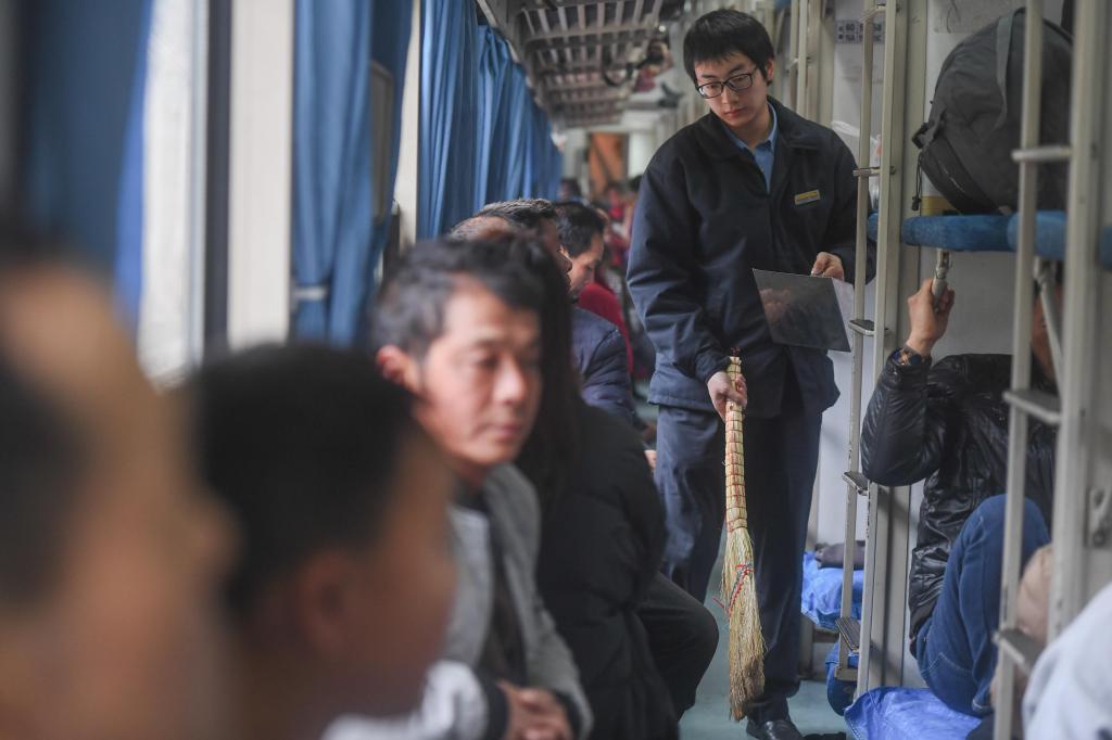 1月21日,李長(zhǎng)安被抽調(diào)到加開(kāi)的K4186次列車上,在車廂內(nèi)清掃垃圾。
