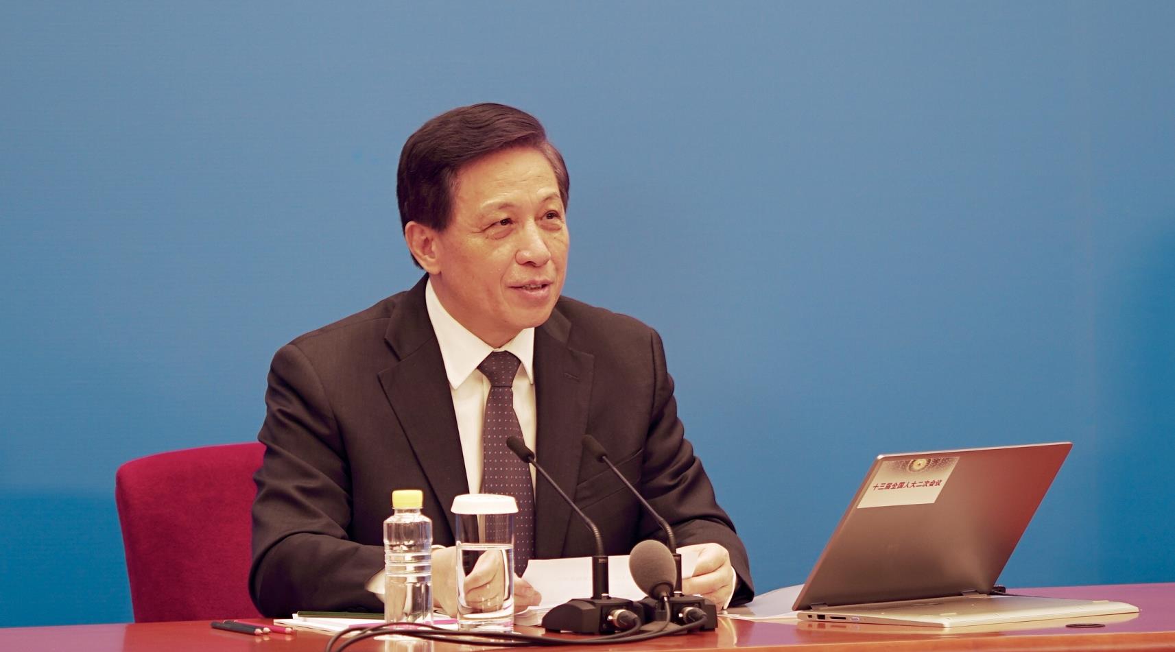 圖為大會發(fā)言人張業(yè)遂。(央視網(wǎng) 劉亮 攝)