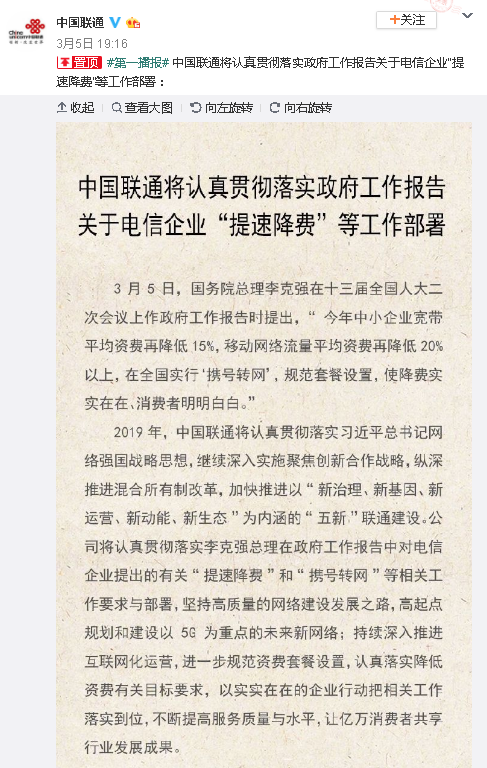 三大運營商回應政府工作報告提速降費要求:堅決落實!