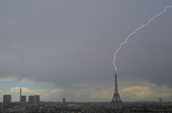 近日,巴黎埃菲爾鐵塔在暴風雨中被閃電擊中,攝影師伯特蘭·庫利克用鏡頭記錄下這一幕。據《巴黎人報》報道,伯特蘭·庫利克是閃電攝影專家,在巴黎從事雷電現象拍攝已有多年,他告訴記者,很幸運能夠飽覽鐵塔的壯觀景色。據悉,閃電擊中塔尖的情況幾乎每年都會發生,埃菲爾鐵塔官方運營公司解釋說,這種現象不會對游客帶來危險。