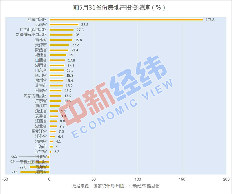 中新經緯6月21日電 (熊思怡)近日,31省份披露5月房地產開發投資情況。廣東、江蘇、浙江三省前5月房地產投資額依舊領跑,18省份房地產投資增速跑贏全國。