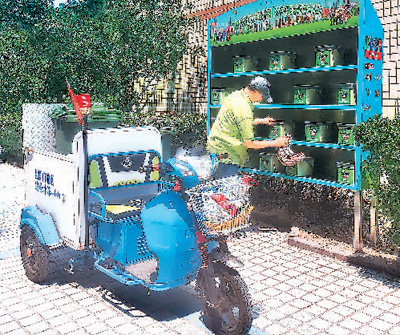 不一會(huì)兒,負(fù)責(zé)收運(yùn)垃圾的工作人員開(kāi)著三輪車(chē)來(lái)了,通過(guò)機(jī)器掃描桶上安裝的智能積分卡,王阿姨投放廚余垃圾的次數(shù)被換算為積分,實(shí)時(shí)上傳到垃圾排放登記系統(tǒng)里。積分到一定數(shù)量后,王阿姨可領(lǐng)取相應(yīng)獎(jiǎng)勵(lì)。廚余垃圾則被送到處理站,由專門(mén)環(huán)衛(wèi)車(chē)輛運(yùn)走。負(fù)責(zé)該項(xiàng)目的某環(huán)保公司項(xiàng)目經(jīng)理邢智磊說(shuō):“現(xiàn)在雅寶公寓近一半居民會(huì)將廚余垃圾放到綠桶里,大家都覺(jué)得這個(gè)辦法好。我們準(zhǔn)備積極推廣。”