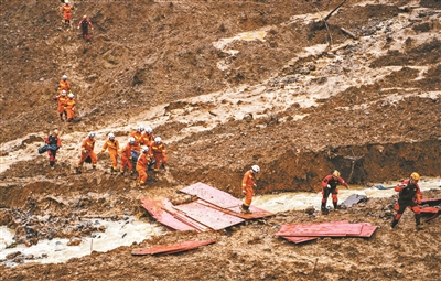 據(jù)介紹,中國安能救援隊聯(lián)合專家組認(rèn)真研判分析,采取“順坡開槽、由點拓面、網(wǎng)格搜尋”的戰(zhàn)法剝開覆蓋層,開挖土方減少山體覆蓋面。同時,根據(jù)被困群眾家屬指認(rèn),采用“以房定位、以房找人”的辦法,先找到房子周圍的水泥路再找房子,當(dāng)大型機械設(shè)備開挖到房子的周圍以后,再采用機械開挖和人工搜救相結(jié)合的辦法進行協(xié)作救援。