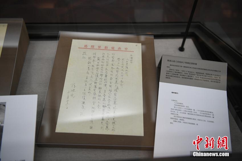 ●長影首度集中公開展出25份電影檔案文獻,圖為陳波兒給《白毛女》導演王濱的信。