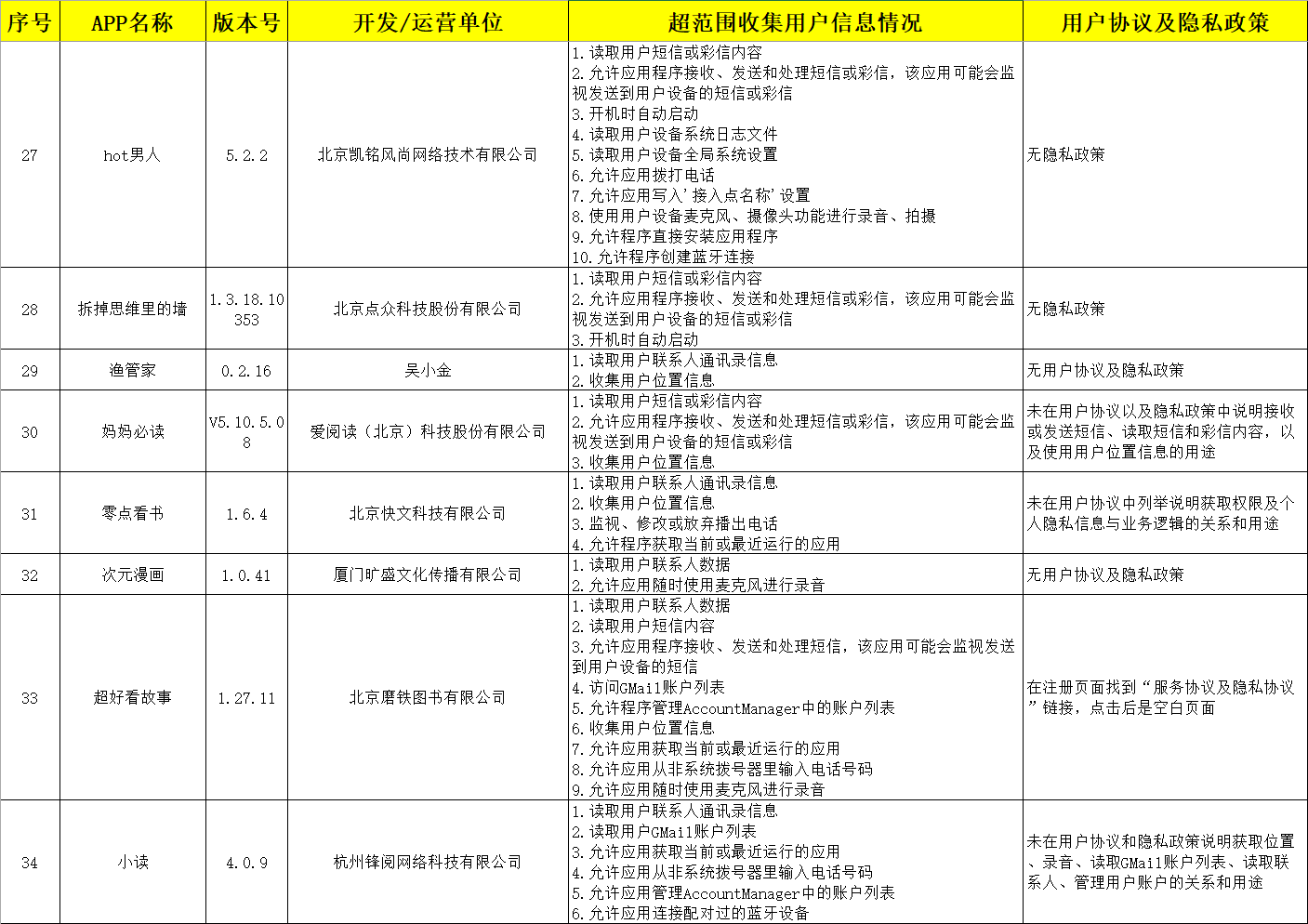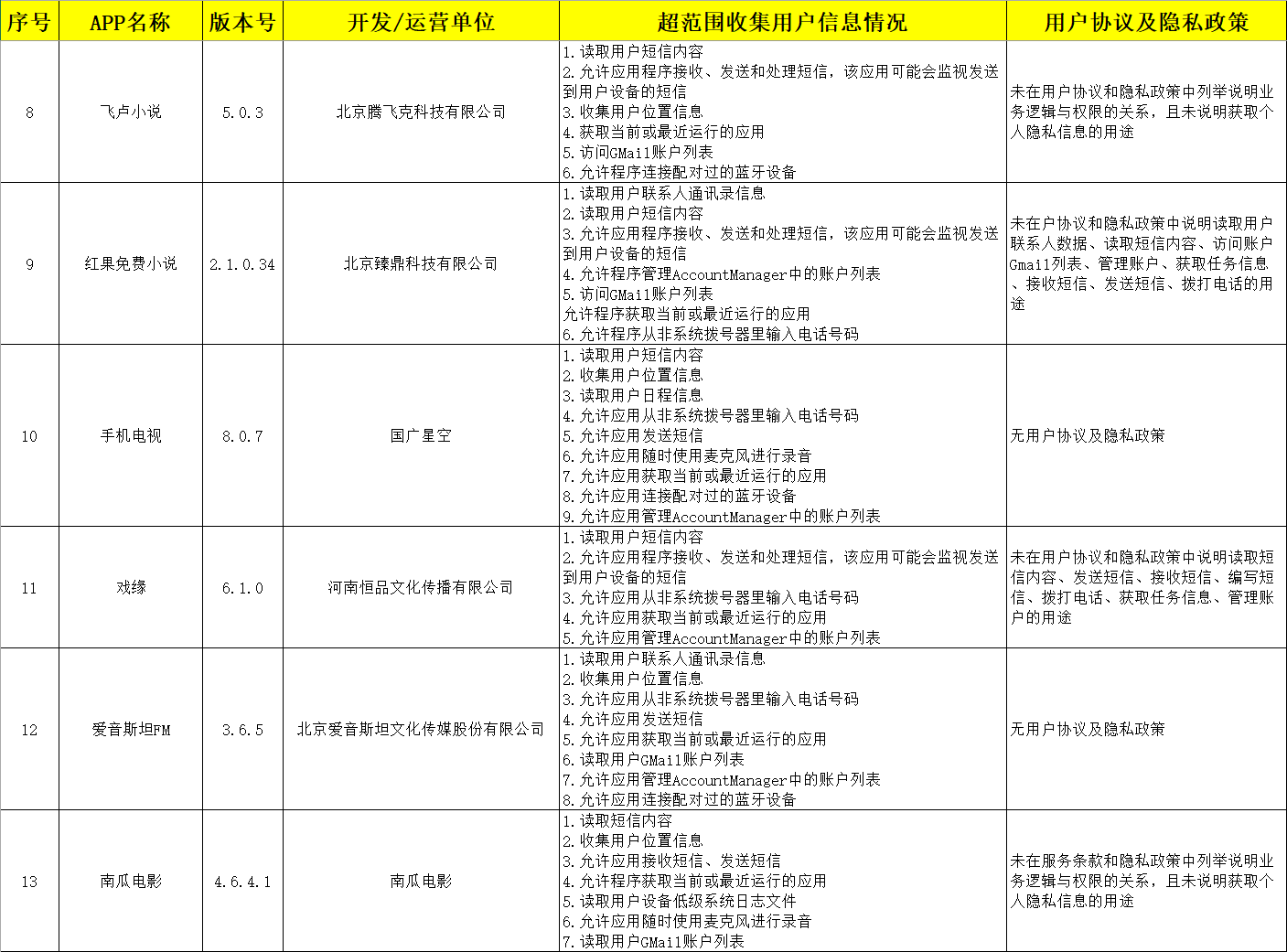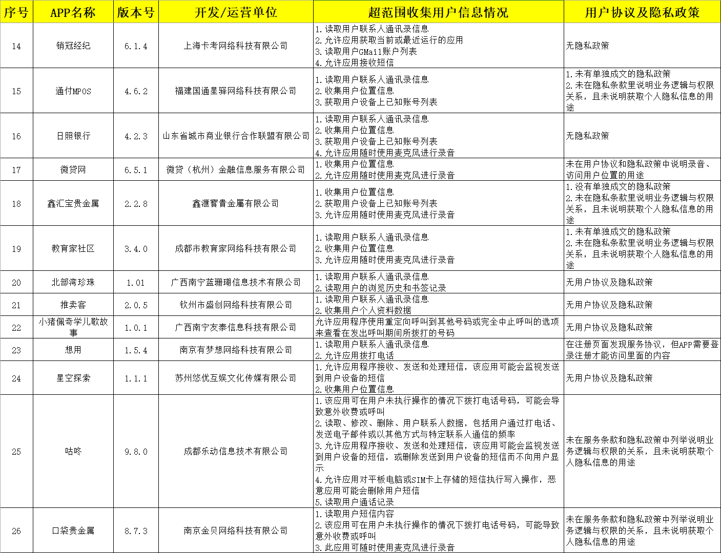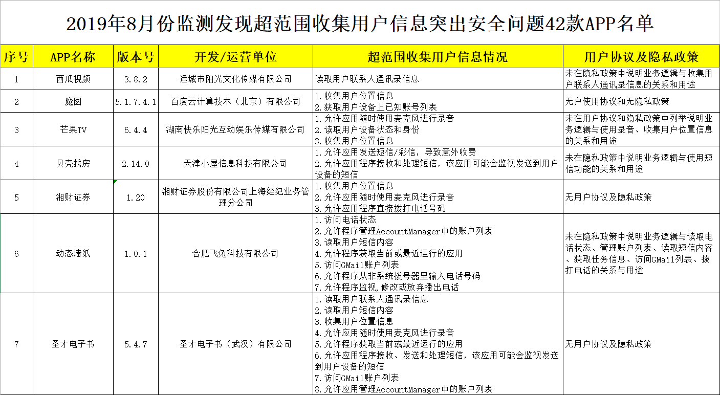其中“西瓜視頻”“貝殼找房”“芒果TV”等42款APP,存在超范圍讀取用戶通話記錄、短信或彩信,收集用戶通訊錄、用戶設備上已知賬號,超權限使用用戶設備麥克風等突出安全問題。目前,廣東省公安機關已將有關監測情況上報公安部通報屬地公安機關開展清理整治。擴散周知?。ㄑ胍曈浾?陳旭婷 高天嬌)