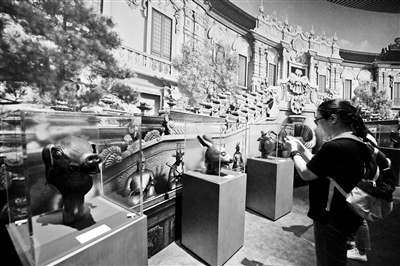 展廳中有一處集中展示了回歸的頤和園文物。據介紹,1993年,美國企業家莫里斯·格林伯格先生以重金購得這批銅窗,無償贈還我國。此前,英國安布羅斯·哈丁博士無償贈還了1860年英法聯軍劫掠自清漪園(頤和園前身)的清代銅鶴等文物。