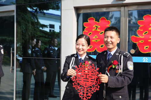 ●22日,同為“90后”的焦作民警張偉偉、洛陽民警李蓮蓮舉行了大約40分鐘的婚禮,就又匆匆返回了工作崗位。