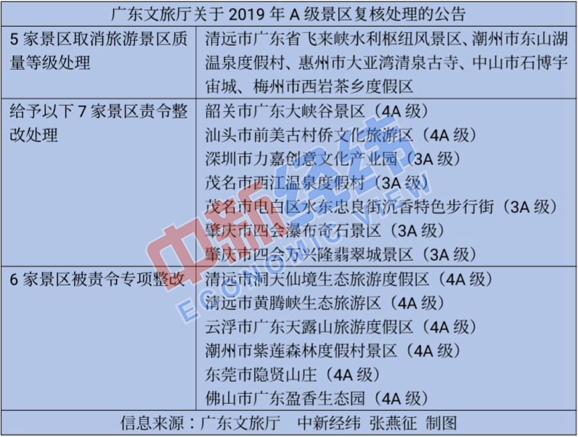 其中,2家5A級景區已經停業整改,另有4家A級景區遭“摘牌”;3家景區降級、7家景區遭警告。
