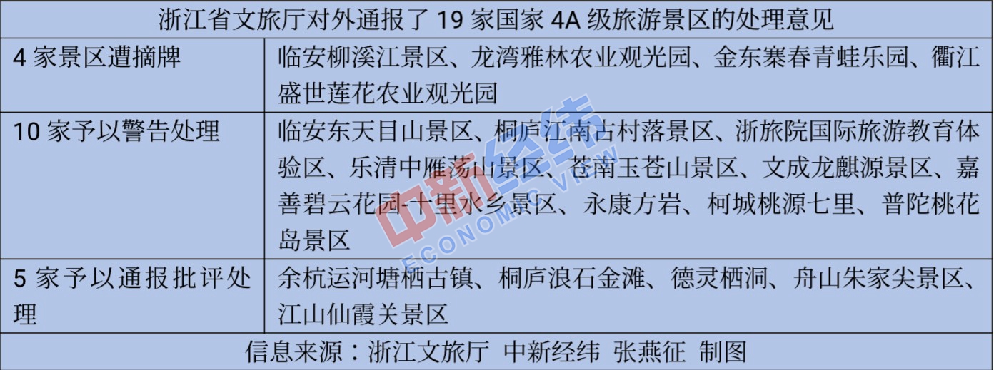 浙江:4家4A景區被摘牌 警告10家