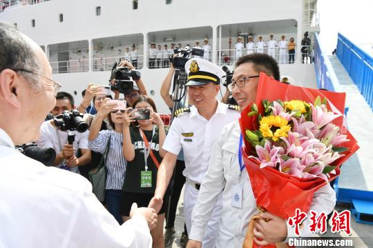 中新網深圳10月13日電(陳文 宋威) 中國自主建造的首艘極地科考破冰船“雪龍2”號,13日下午抵達深圳蛇口郵輪母港CR2碼頭,助陣將于14日至17日在深圳舉行的2019中國海洋經濟博覽會(簡稱海博會)。深圳舉行盛大儀式歡迎“雪龍2”號科考船及國家第36次南極考察隊。