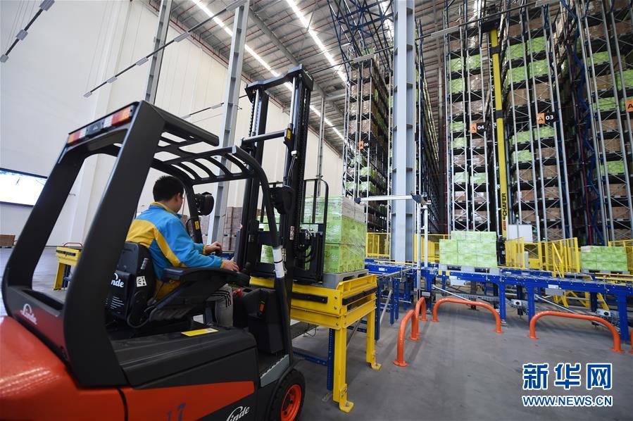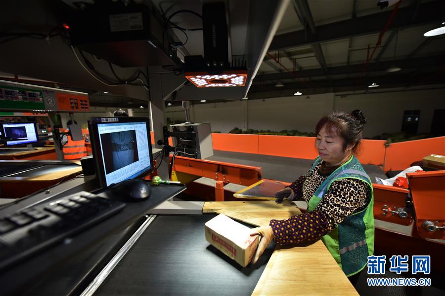 工作人員在南京市雨花經濟開發區一家智慧物流基地內忙碌(2016年11月3日攝)。該物流基地建筑面積達20多萬平方米,可存儲商品2000萬件,日處理包裹181萬件。整個物流基地實現全流程自動作業,從訂單生成到商品出庫,最快可縮短到30分鐘。新華社發