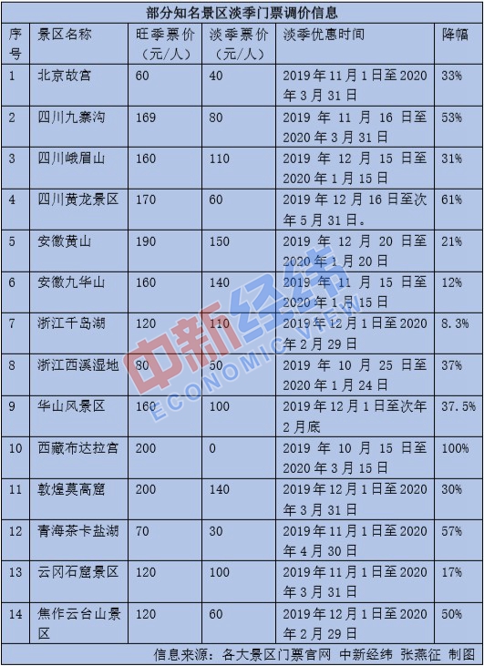 其中,旺季門票價格為170元/人,執行時間由每年4月1日至11月15日調整為每年6月1日至12月15日;淡季門票價格為60元/人,執行時間由每年11月16日至次年3月31日調整為每年12月16日至次年5月31日。