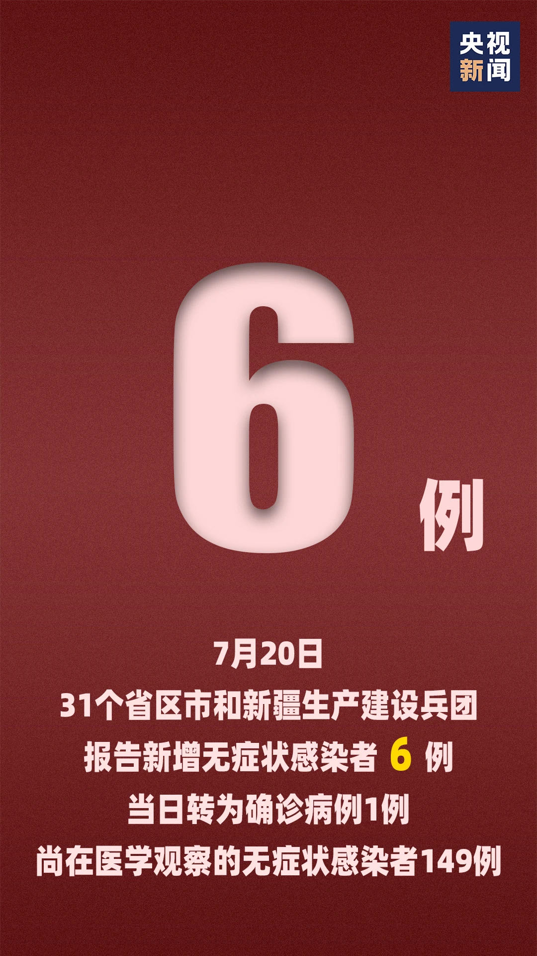 31個省(自治區(qū)、直轄市)和新疆生產(chǎn)建設(shè)兵團(tuán)報告新增無癥狀感染者6例(境外輸入1例);當(dāng)日轉(zhuǎn)為確診病例1例(境外輸入1例);當(dāng)日解除醫(yī)學(xué)觀察10例(境外輸入7例);尚在醫(yī)學(xué)觀察無癥狀感染者149例(境外輸入80例)。