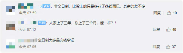 企業(yè)冷眼相看,社會輿論對“非全”也并不寬容,“拿錢買證”“學(xué)歷水”“上了幾個月學(xué)”不絕于耳。