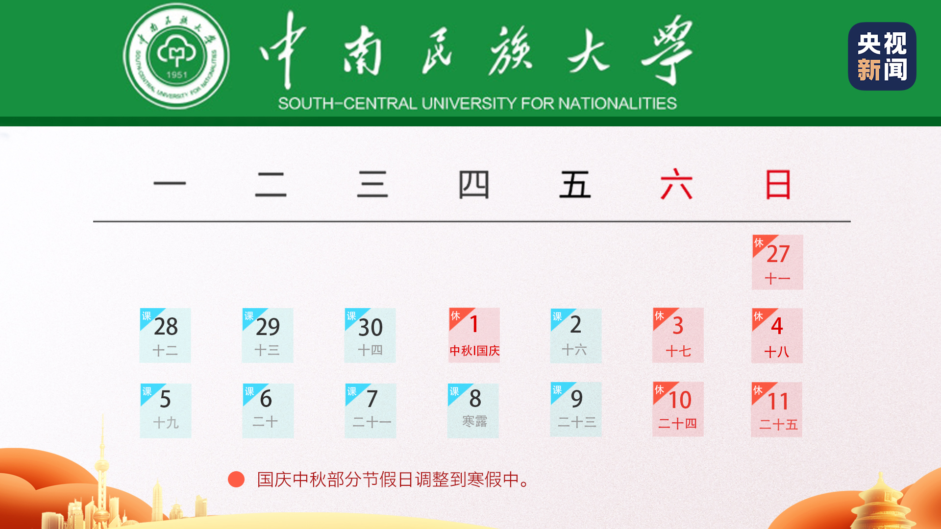 目前,對中秋國慶假期安排,仍有學校處于觀望狀態,也有很多高校作出了縮短雙節假期的決定,并公布了假期補課及調休時間,一些學校對寒假放假時間也作了相應調整。