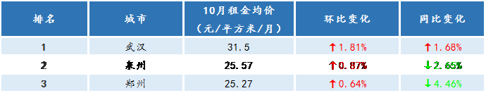 從環(huán)比上漲城市來看,本月租金環(huán)比上漲的TOP3城市為武漢、泉州、鄭州。疫情后,租賃市場受沖擊較大,其中武漢作為本次疫情的中心受影響嚴重,隨著疫情的影響逐步褪去,租賃市場活躍度逐漸提升。