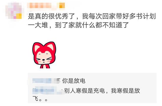 還有網(wǎng)友調(diào)侃說,學霸回家是“充電”,而一些人則是“放電”↓↓↓