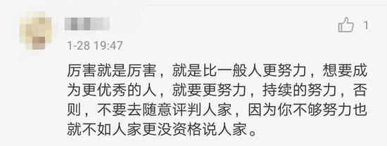 有網(wǎng)友表示,“厲害就是厲害,就是比一般人努力,不要隨意去評判別人,你沒資格說人家”↓↓↓