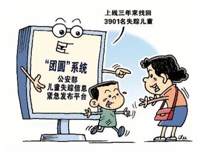 公安部兒童失蹤信息緊急發(fā)布平臺“團(tuán)圓”系統(tǒng)上線3年來,共發(fā)布走失兒童信息3978條,找回3901名失蹤兒童,找回率達(dá)98%。 徐 駿作 新華社發(fā)