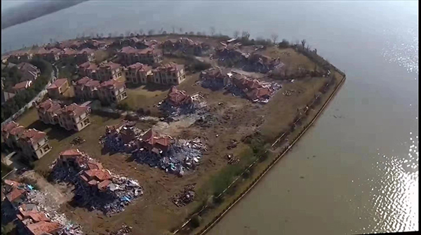 在即將交付前一個(gè)月,位于蘇州吳江太湖邊的、央企中糧旗下房地產(chǎn)項(xiàng)目的多幢臨湖別墅卻突遭拆除。